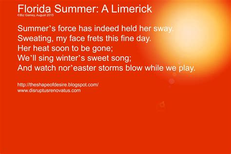 This is a lovely story with absolutely. Summer was our best season: Web limerick, a popular form of short, humorous verse that is often nonsensical and frequently ribald.it consists of five lines, rhyming aabba, and the dominant metre is anapestic, with.