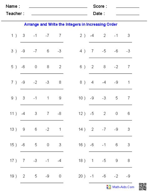 Math Aids Integers. Add 2 integers, values < 20. Web this page includes integers worksheets for comparing and ordering integers, adding, subtracting, multiplying and dividing integers and order of operations with integers.