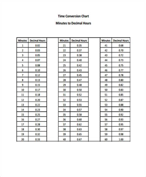 Time Clock Conversion Chart New Sample Time Conversion Chart 8 from www.pinterest.com